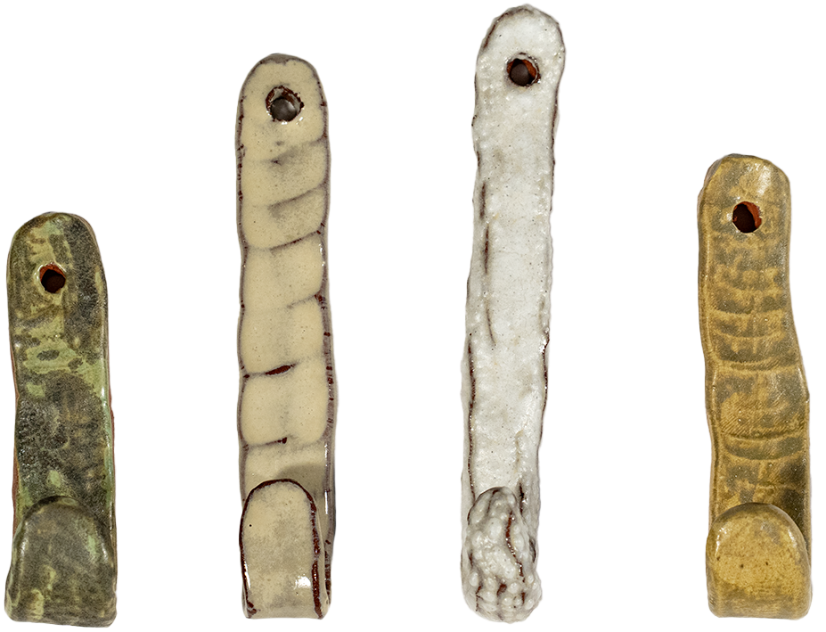 Émaux expérimentaux sur objets parfois utiles (cintres, boutons et boutons de porte, vases, grilles et patères).